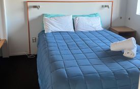 A spacious, comfortable two-bedroom unit. A double and single bed in one bedroom and two single beds in the other bedroom. Separate lounge with dining area and bathroom. Full kitchen with fridge, oven and microwave. 32" TV.
